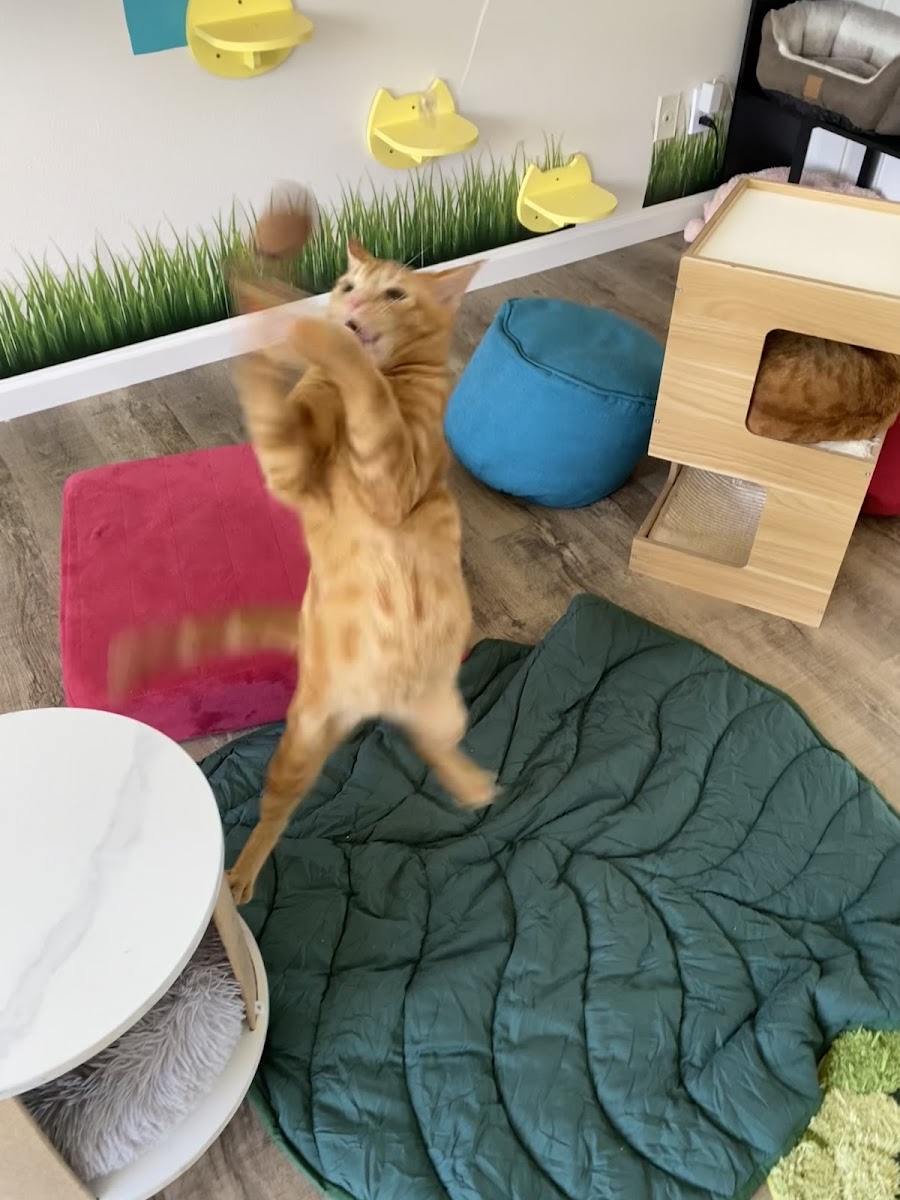 While the cafe aspect is still evolving, many customers love the social, bright, and uplifting environment. With playful cats lounging around, Eric Watson describes the experience as a fulfilling one; "The cats are energetic and playful, and you’ll get a good variety of personalities." Socks are required due to the cafe’s commitment to keeping the space clean and comfortable for the cats, and you can even purchase a pair if you forget your own!
